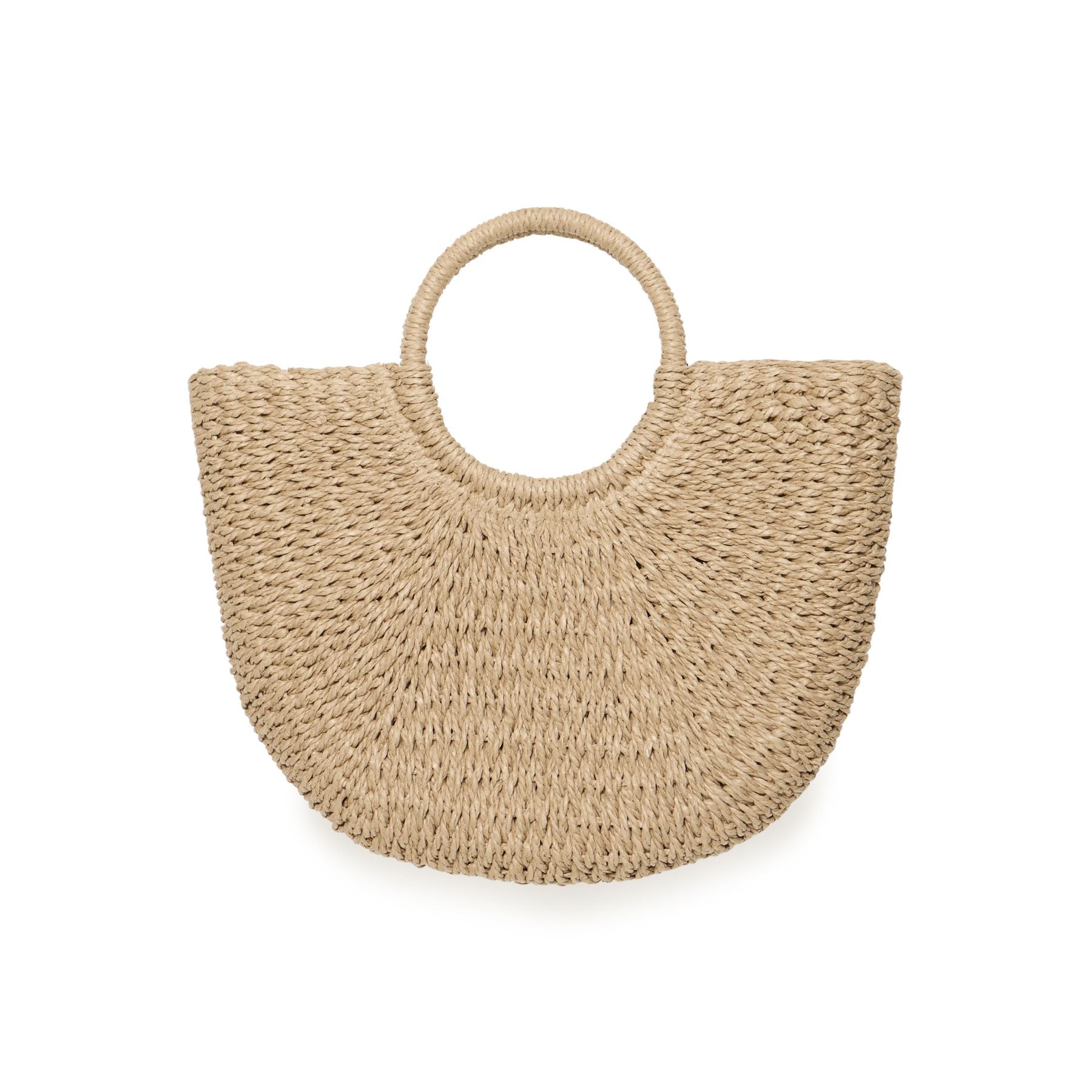 This woven shopper brings an effortless, sun-drenched charm to everyday outings. Crafted with a structured circular handle and a beautifully textured weave, it has that relaxed vacation feel while still being practical enough for daily errands. The roomy silhouette makes it ideal for carrying everything from market finds to beach-day essentials, while the natural finish pairs easily with summer dresses, denim, or linen. It’s the kind of bag that quietly says you have somewhere lovely to be.