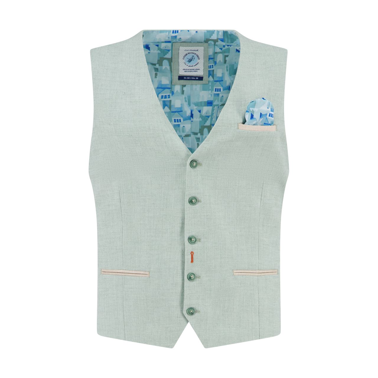Tailored polish with a summer state of mind. This linen look vest delivers the texture and visual depth of classic linen, but with the durability and ease of a performance blend. Lightweight and breathable, it layers effortlessly over a crisp shirt for weddings, events, or any moment that calls for just a little extra intention.