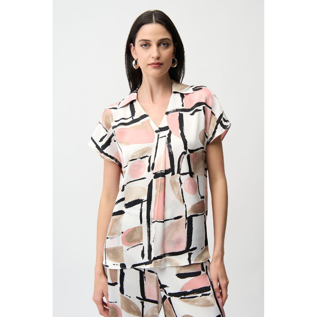 Recycled Satin Abstract Print Boxy Top With V-neckline