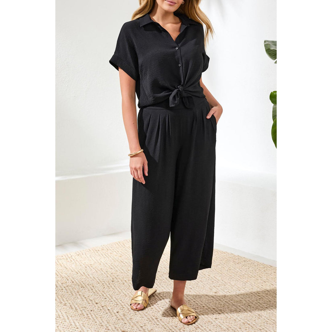 Striped French Terry Crew Neck Top w/ Combo Trim