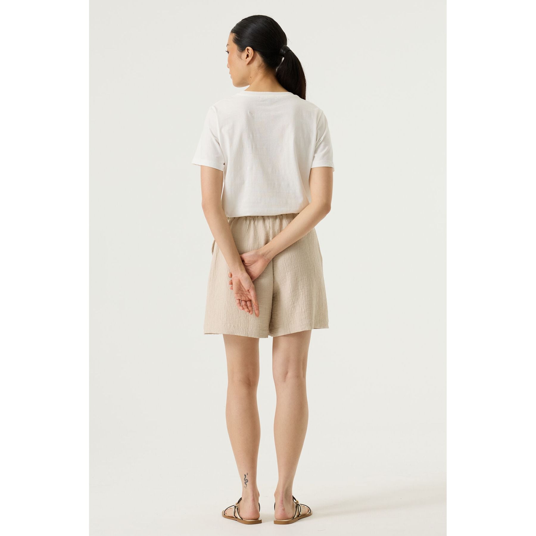 Easy, airy, and just textured enough to look a little more interesting than your average warm-weather short, the Arianna Short is the kind of piece that makes getting dressed feel pleasantly uncomplicated. The soft crinkled fabric, relaxed fit, and elastic waistband keep things comfortable, while the neutral tone makes it an easy match for tanks, tees, button-ups, and beachy knits. A polished little throw-on-and-go short with everyday versatility.