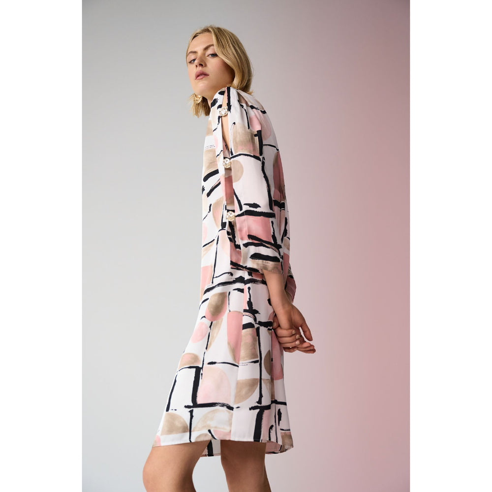 Recycled Satin Abstract Print Trapeze Dress w/ Gold Detail