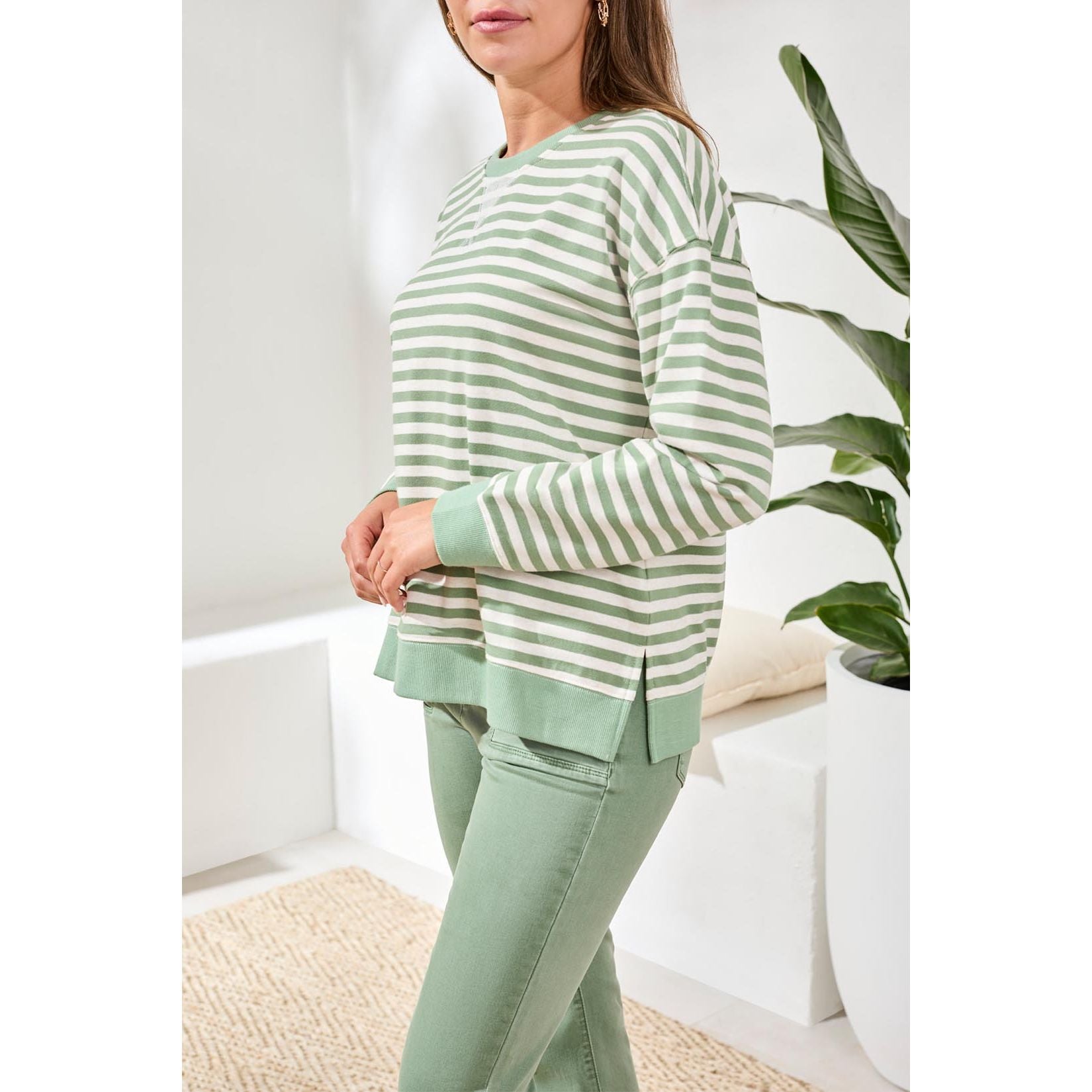 Enjoy cozy comfort and bold color in this long sleeve stripe crew top, crafted from French terry for an ultra-soft feel. The colorblock combo brings playful edge, while the relaxed fit keeps you feeling at ease every season.