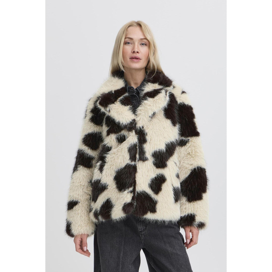 Chaqueta ajustada de ante sintético laminado con estampado abstracto