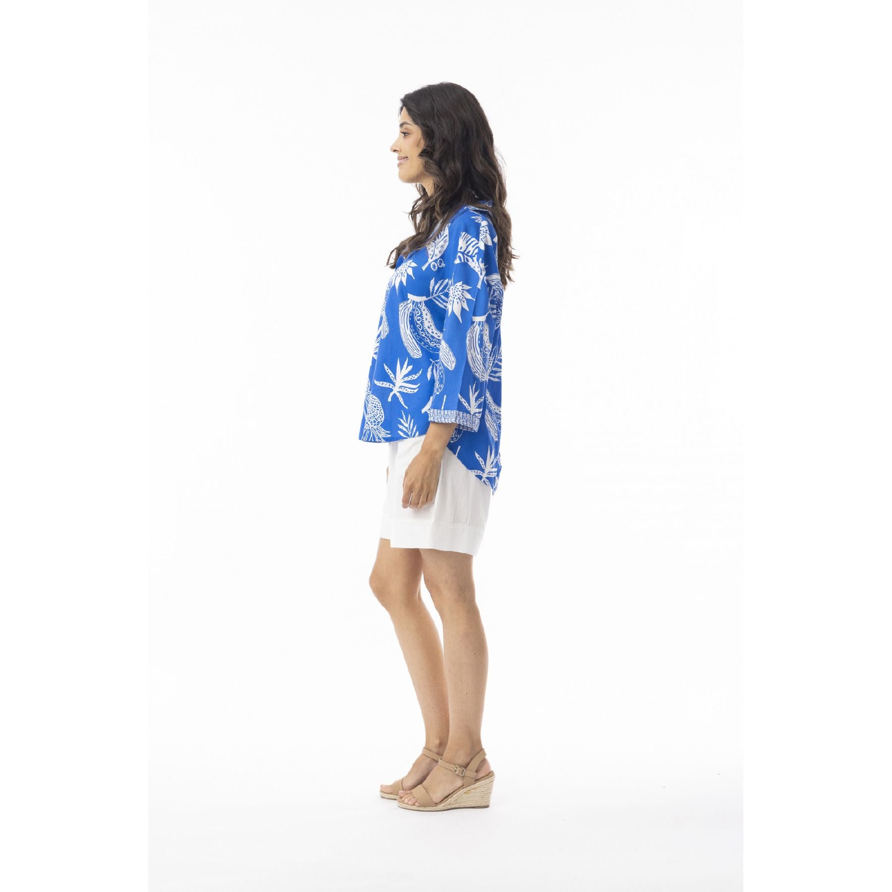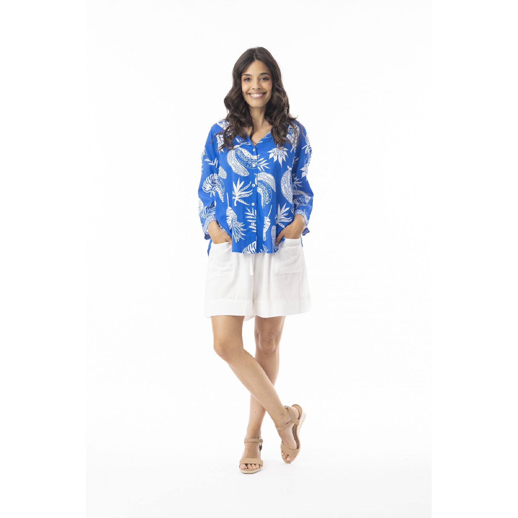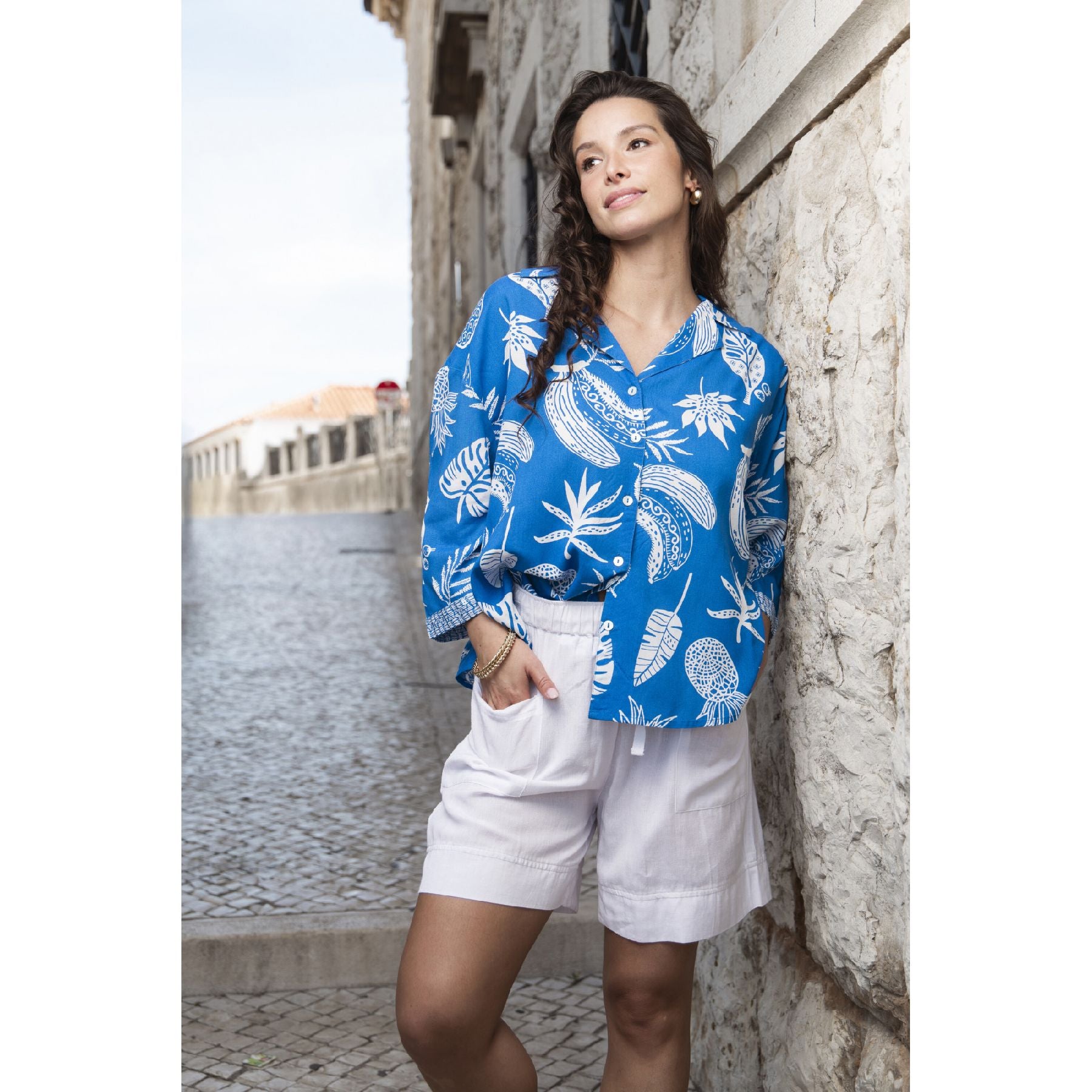 The Comodoro Top brings instant vacation energy—whether you’re actually boarding a plane or just mentally escaping on a Tuesday afternoon. The bold blue base and crisp white botanical print feel fresh without trying too hard, while the relaxed button-front silhouette keeps things breezy and wearable. Easy to dress up with linen trousers or down with your favourite shorts, this is the kind of top that quietly does a lot of heavy lifting in your wardrobe.