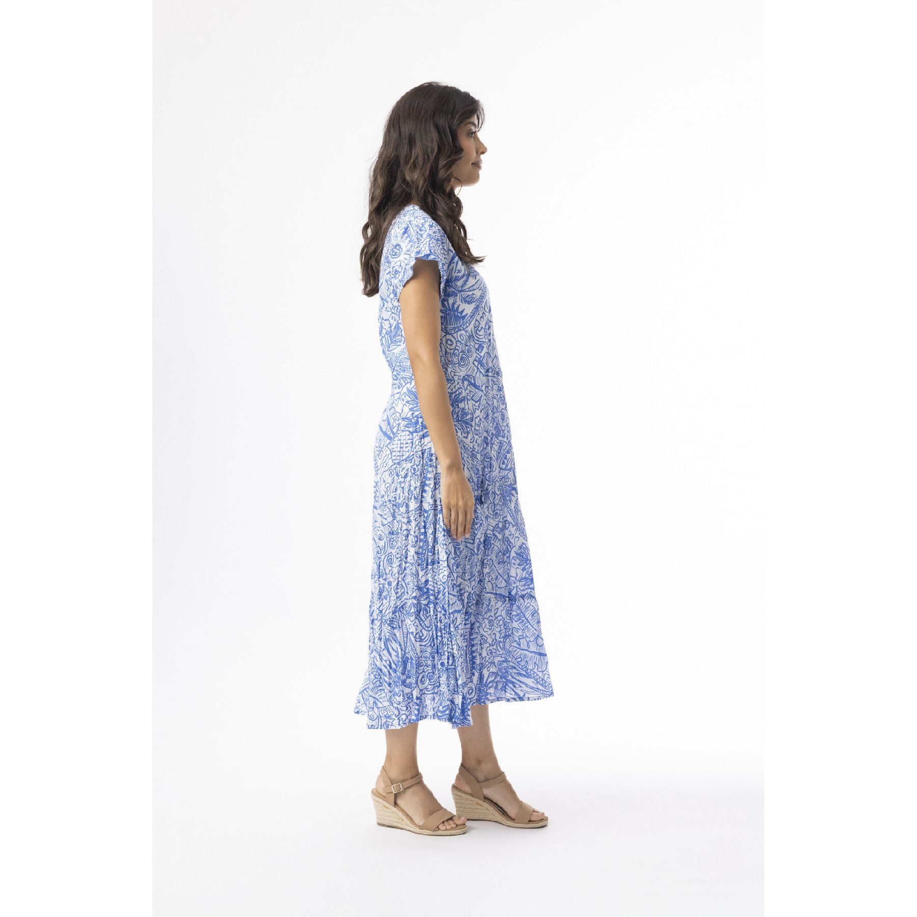 Light, airy, and quietly eye-catching, the Aksharay Dress is one of those pieces that feels special without trying too hard. The soft blue print brings a subtle artistry to the look, while the flowing skirt and easy short sleeves keep it feeling relaxed and wearable. Made from breathable cotton, it’s ideal for warm days when you want something polished but unfussy—equally suited to daytime plans, travel, or an effortless dinner out.