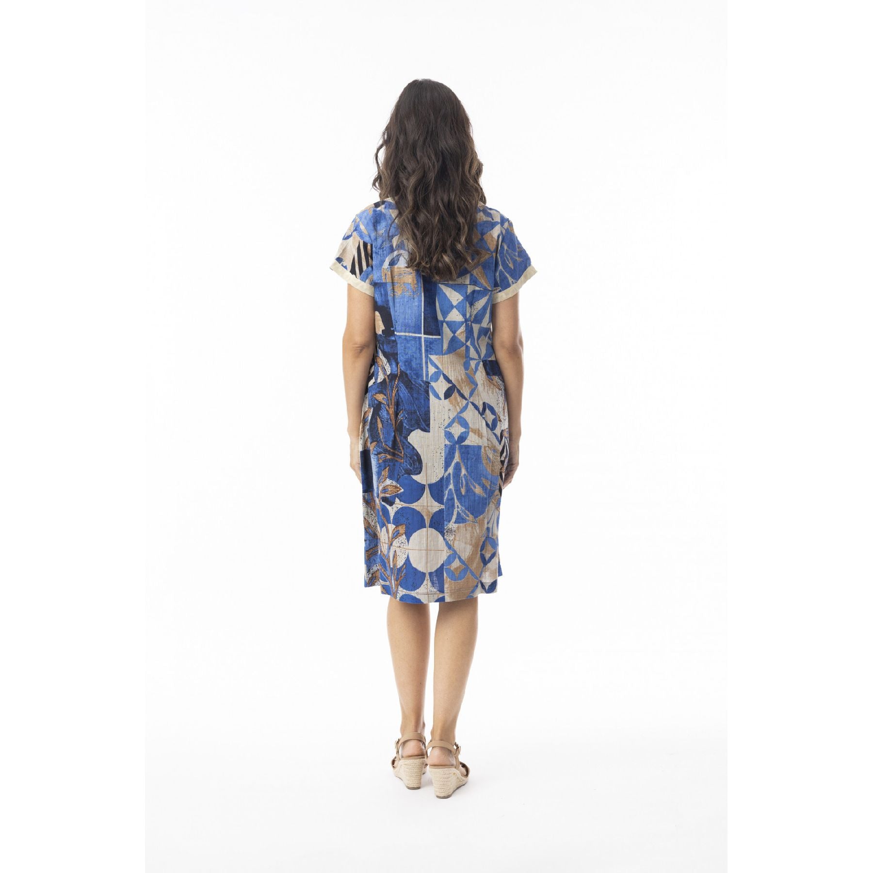 The Wyndham Dress feels like a little piece of a European summer—artful, relaxed, and quietly confident. Its patchwork-style print mixes rich blues with soft neutrals, giving it that “found-it-while-travelling” energy without trying too hard. Easy short sleeves, a knee-length cut, and practical pockets make it as wearable as it is interesting—equally at home on a patio, at a market, or dressed up with a wedge for dinner. This is the kind of dress that does all the work for you.