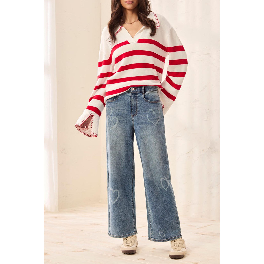Audrey Hugging Wide Leg Denim With Embroidered Finish