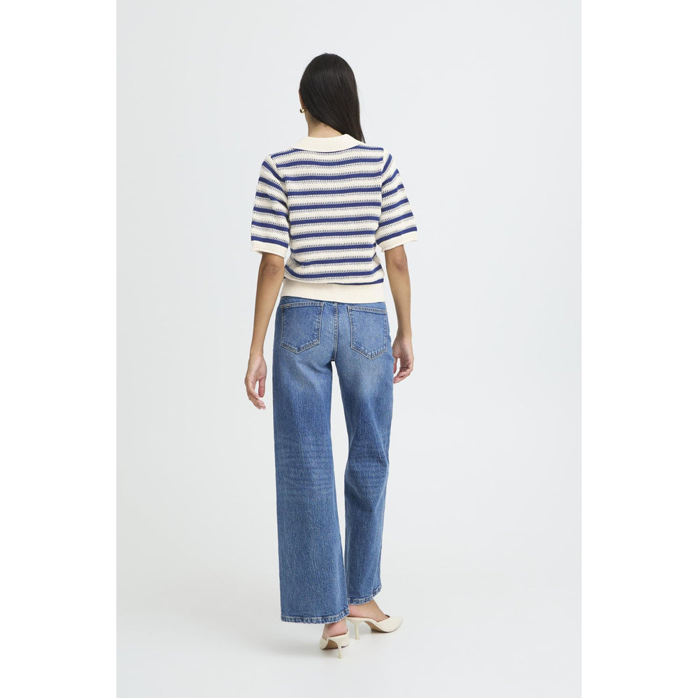 Suéter cuadrado con estampado de rayas de viscosa cepillada y cuello con cremallera